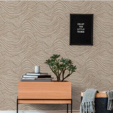 Parato disegno astratto effetto tessuto. Trama in rilievo adattabile ad ogni stile. Lavabile e resistente.