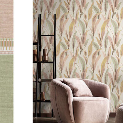 Arche’ – Carta da parato floreale con foglie su trama effetto tessuto