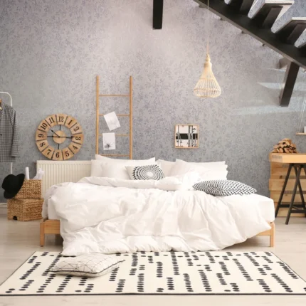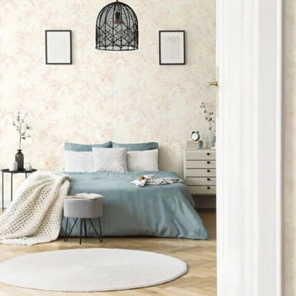 Parato disegno floreale effetto tessuto. Trama in rilievo adattabile ad ogni stile. Lavabile e resistente.
